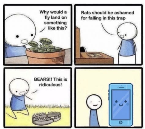 Phone addiction is real, and many reach for our phones the moment we are alone or bored. We must work to limit our time on our phones, or use them only as a tool to better ourselves. We do not want to be worshiping our phones by performing the ritual of checking notification 96 times a day. At the very least a screenless Saturday or the prescription known as Shabbat.